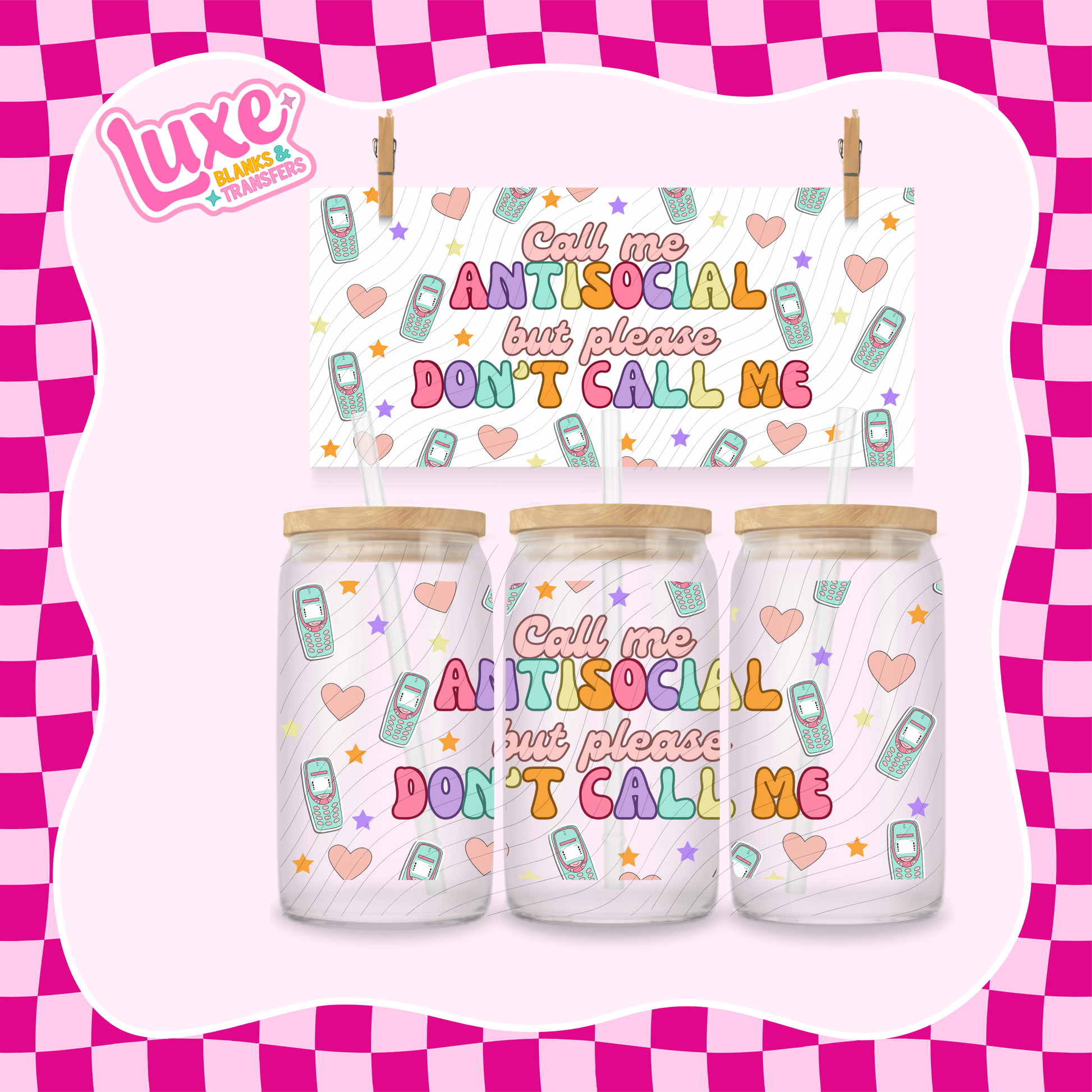 Call Me Antisocial | 16oz UV DTF Wrap | #1455