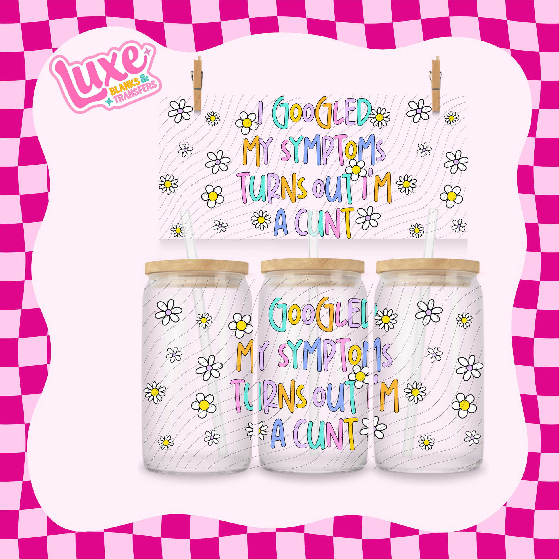 Our high-quality UV DTF wraps are designed to perfectly fit 16oz Libbey glass cans and tumblers. Featuring vibrant, long-lasting colours and crisp detail, these wraps are easy to apply — just peel, stick, and smooth for a flawless finish! No heat or special tools needed. Whether you're creating for yourself or for your small business, our UV DTF wraps make customisation effortless and professional-looking every time.