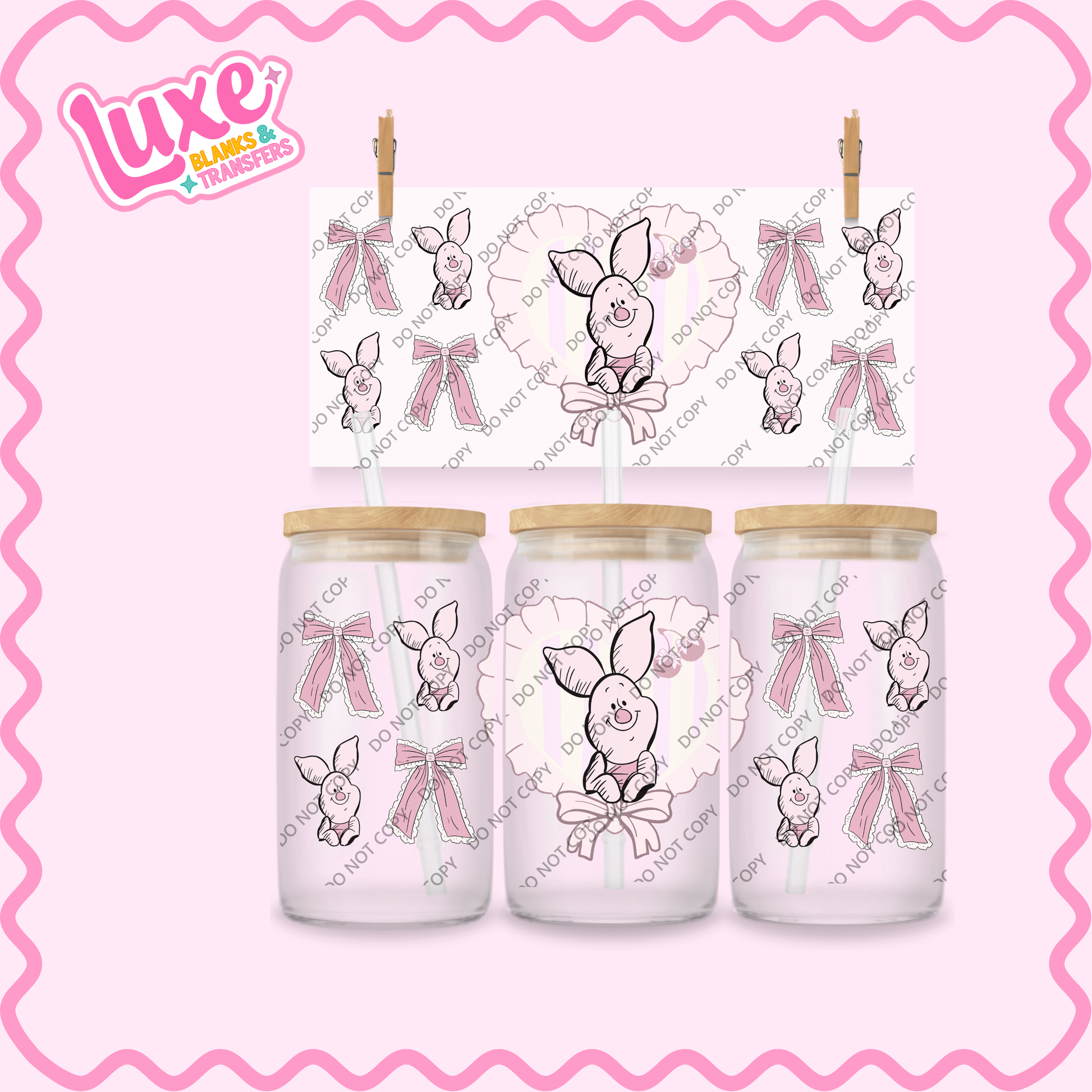 16oz UV DTF Wrap | Pig Character Cutesy Bows | #2178