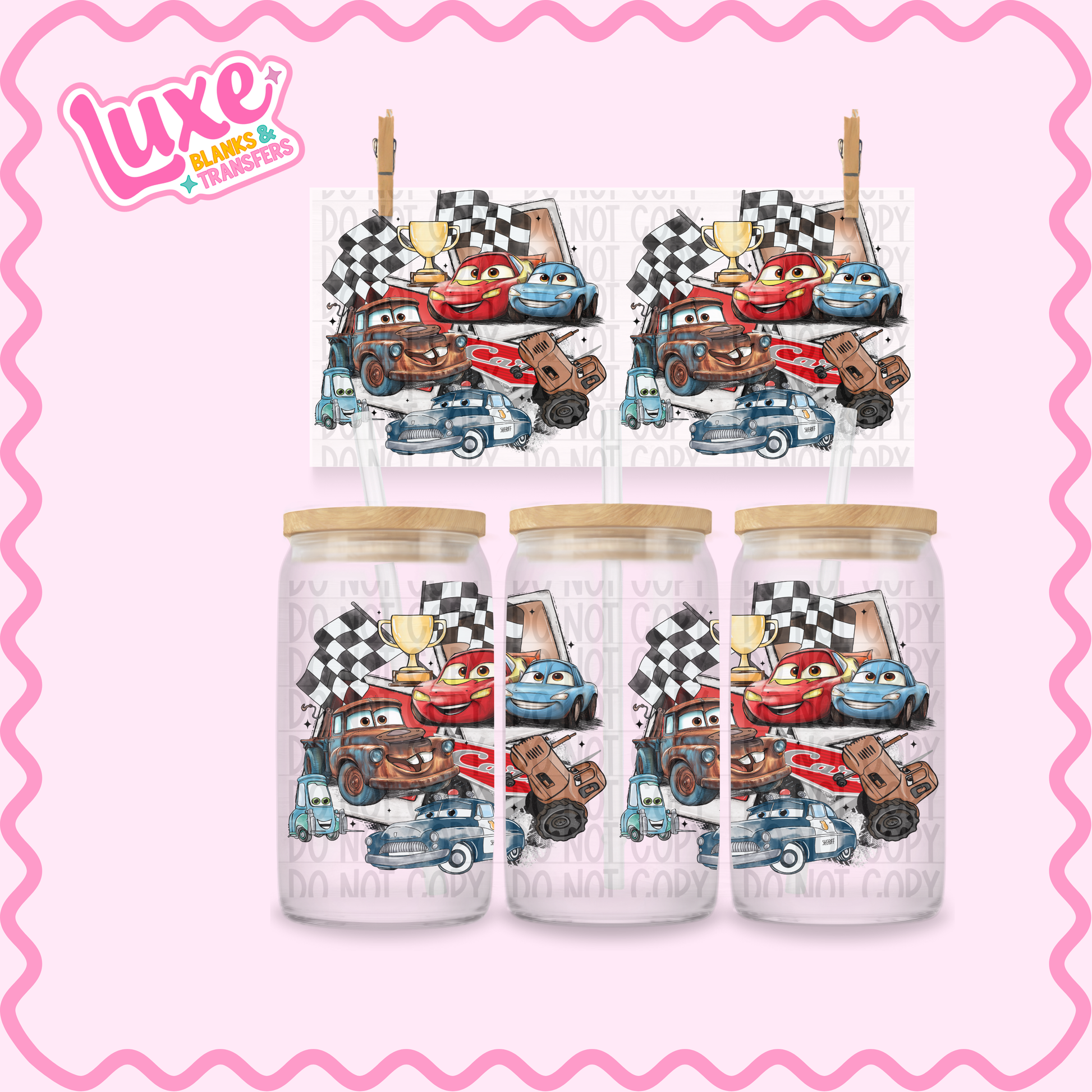 16oz UV DTF Wrap | McQueen Checkered Flags | #2380