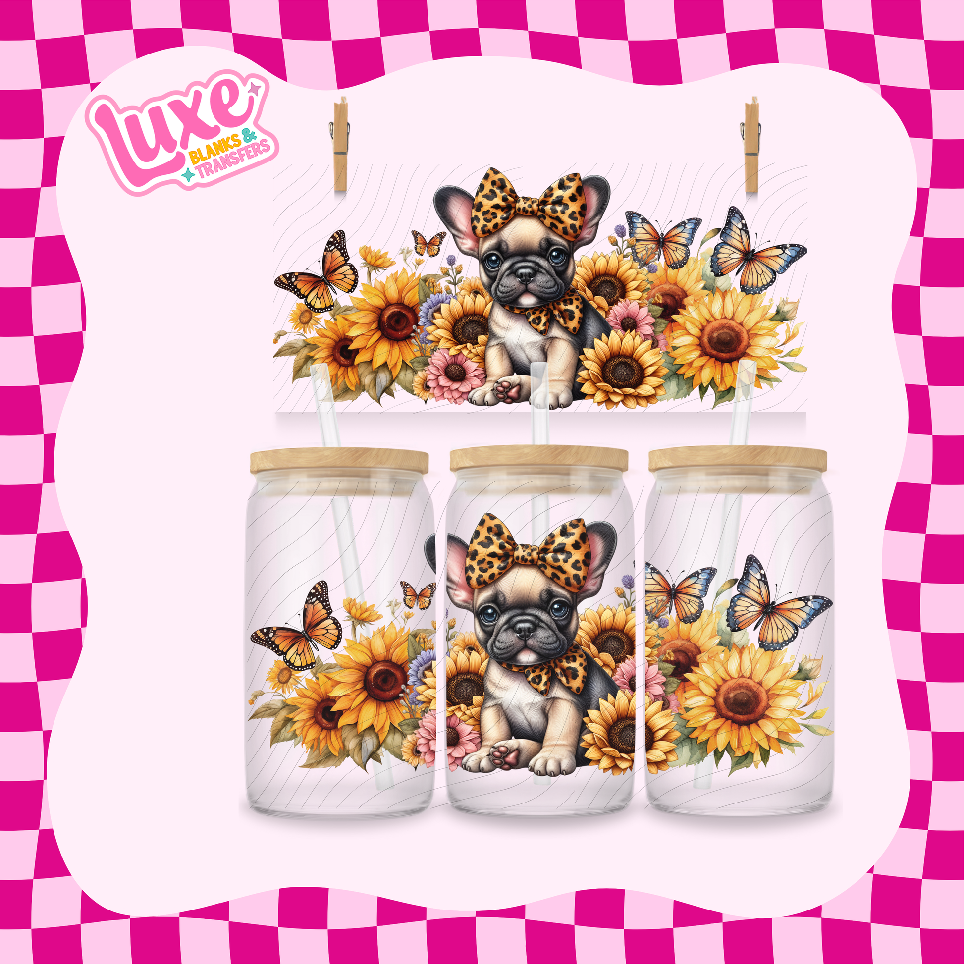 Frenchie Puppy Sunflowers 2 | 16oz UV DTF Wrap | #1628