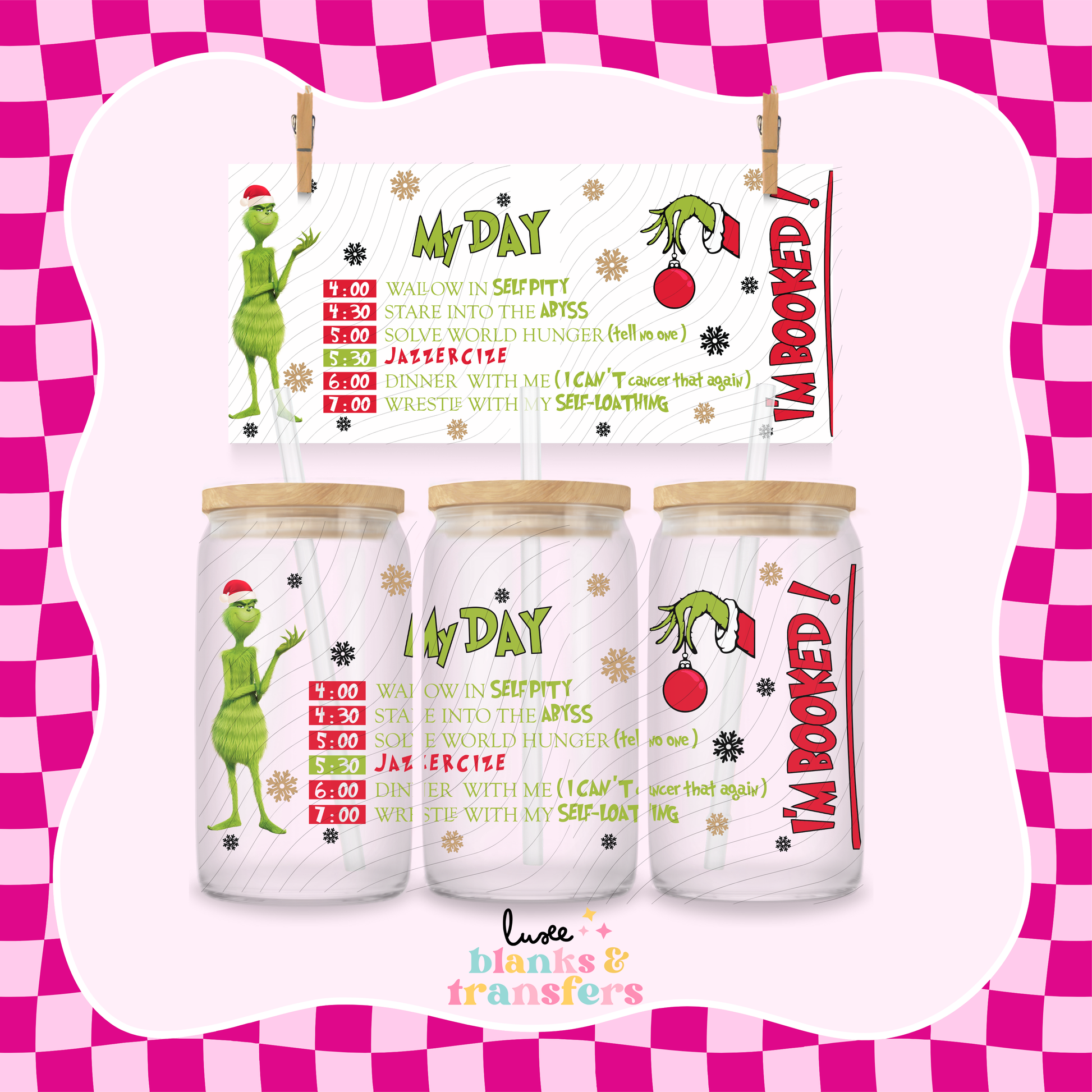 Our high-quality UV DTF wraps are designed to perfectly fit 16oz Libbey glass cans and tumblers. Featuring vibrant, long-lasting colours and crisp detail, these wraps are easy to apply — just peel, stick, and smooth for a flawless finish! No heat or special tools needed. Whether you're creating for yourself or for your small business, our UV DTF wraps make customisation effortless and professional-looking every time.