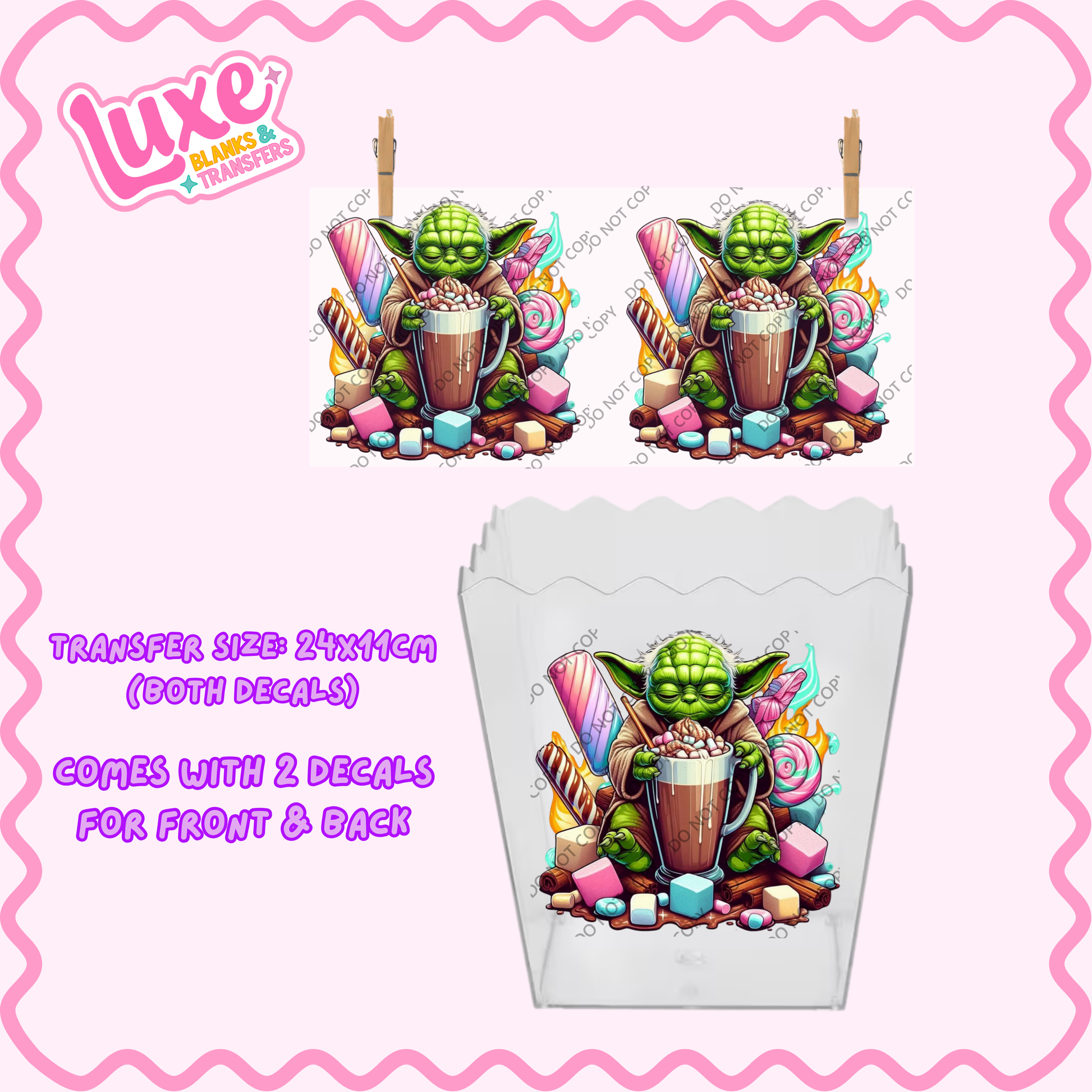 Popcorn/Lolly Bucket UV DTF Transfer | Y0da Character | #F02