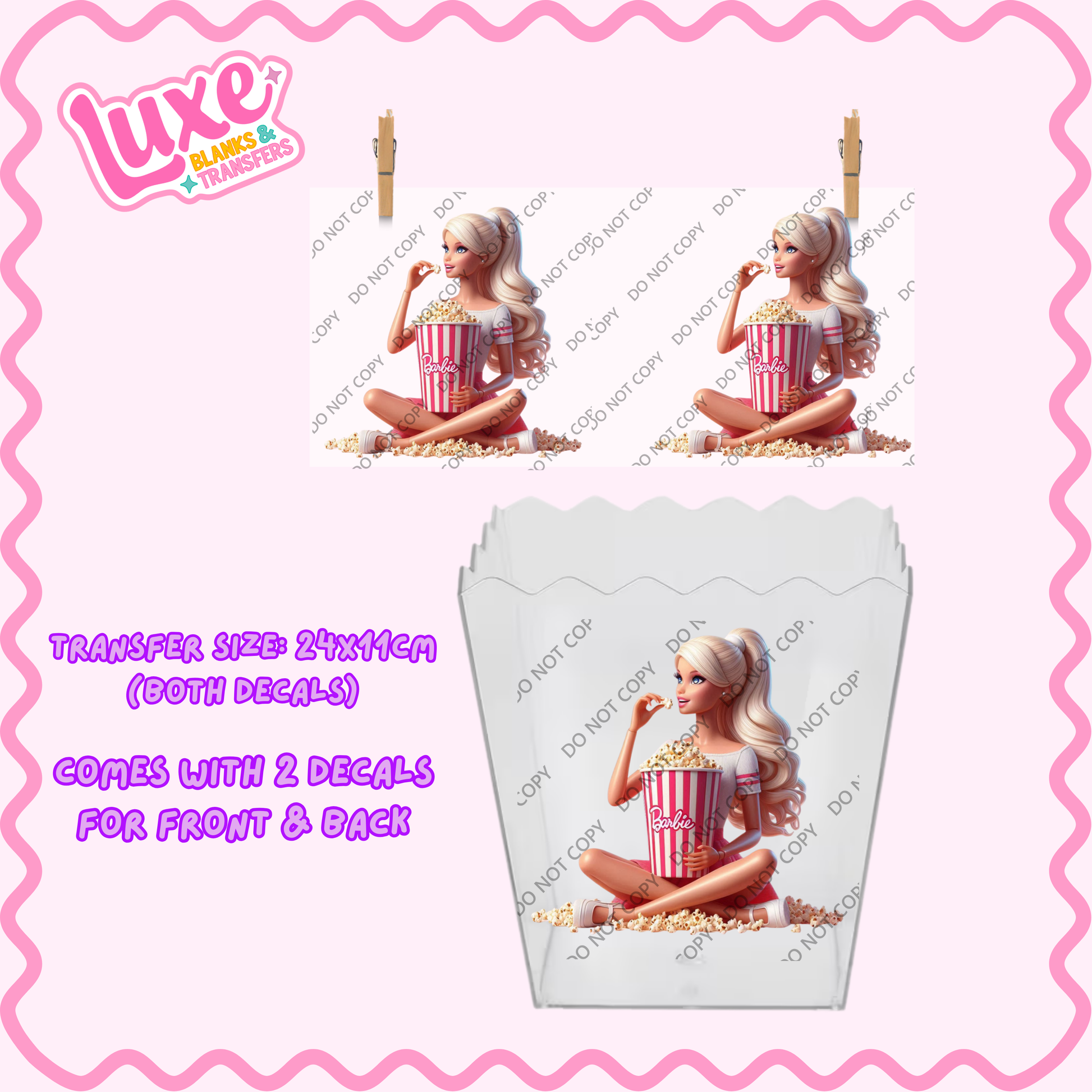 Popcorn/Lolly Bucket UV DTF Transfer | Bar/bie | #F11