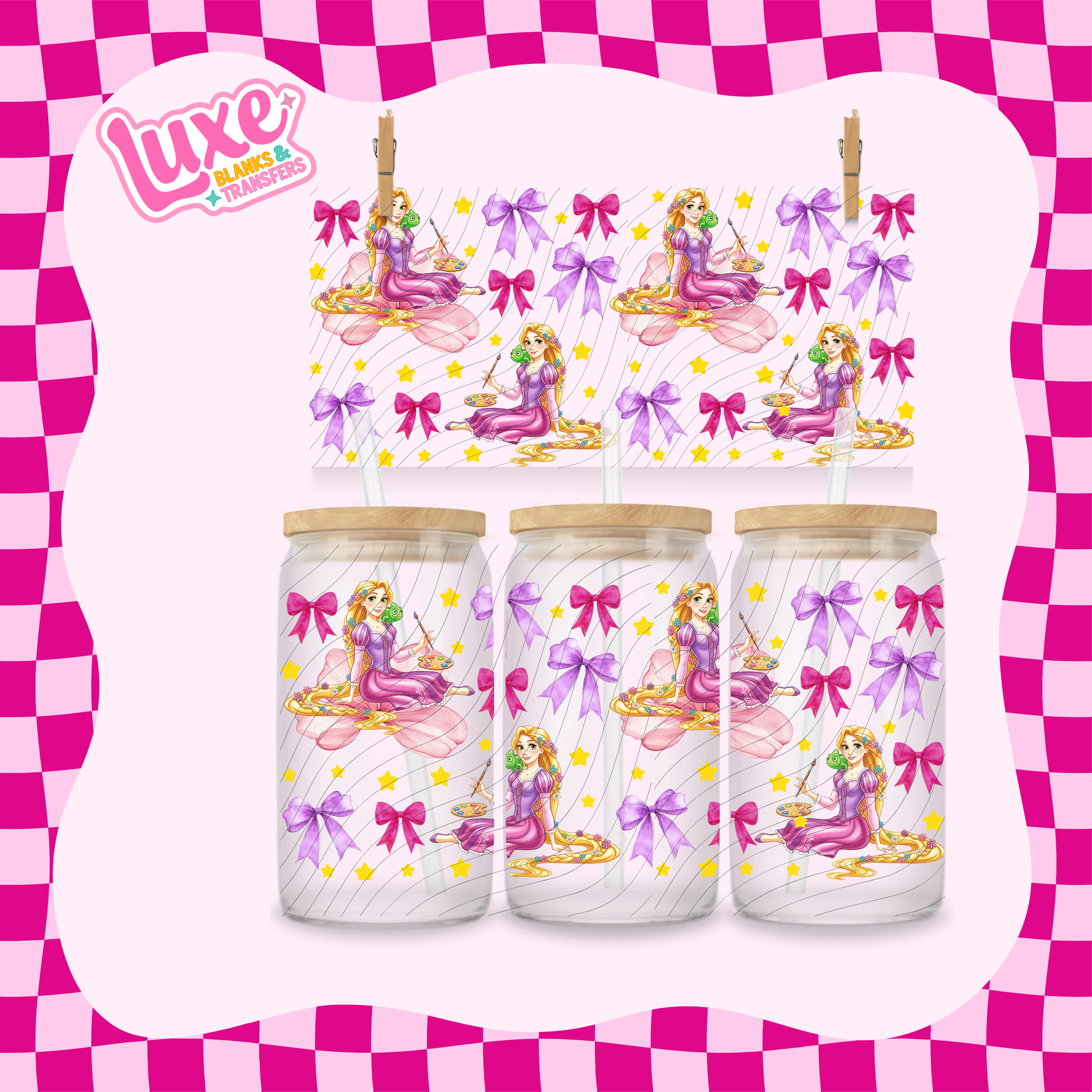 Tangle Princess Bows | 16oz UV DTF Wrap | #1660