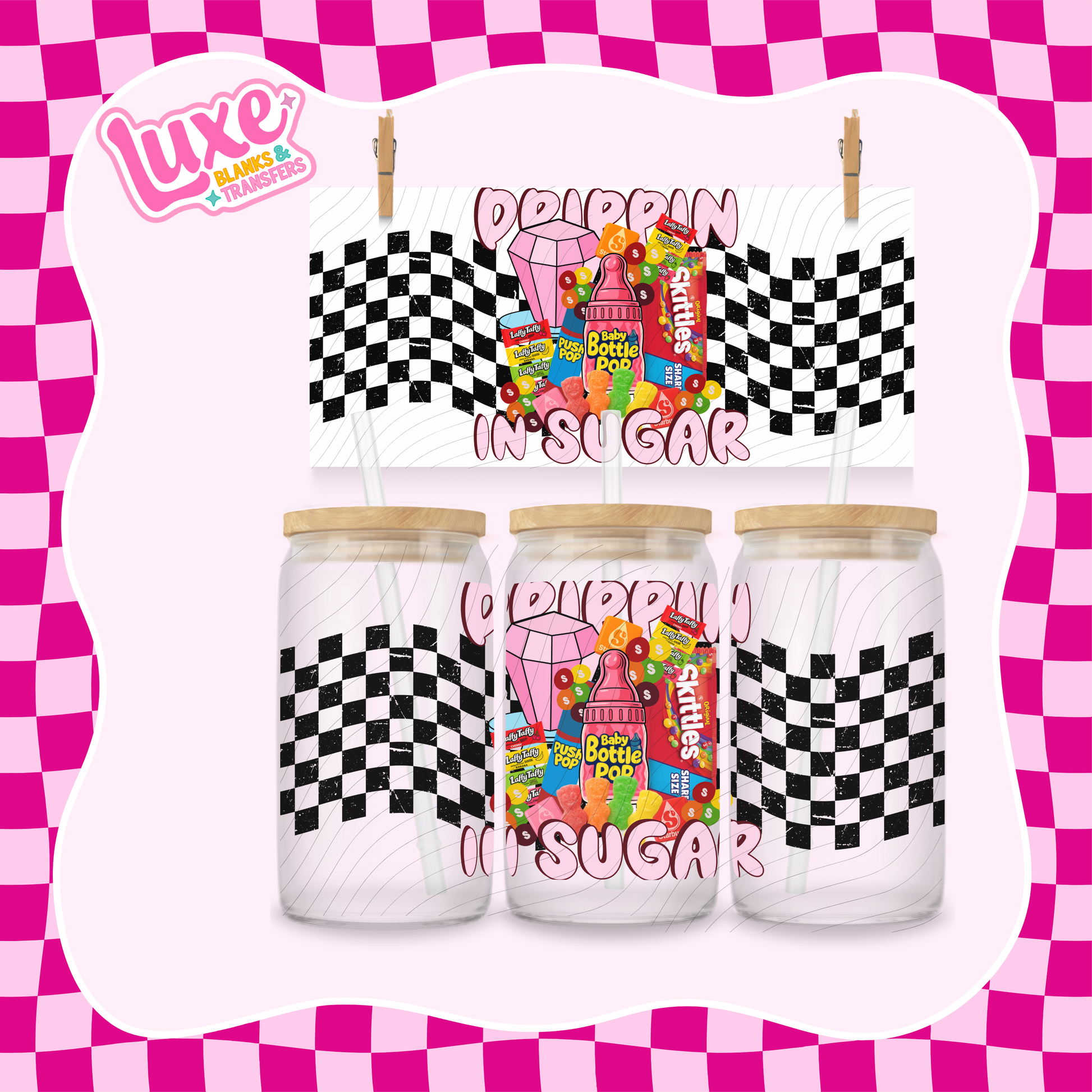 Our high-quality UV DTF wraps are designed to perfectly fit 16oz Libbey glass cans and tumblers. Featuring vibrant, long-lasting colours and crisp detail, these wraps are easy to apply — just peel, stick, and smooth for a flawless finish! No heat or special tools needed. Whether you're creating for yourself or for your small business, our UV DTF wraps make customisation effortless and professional-looking every time.