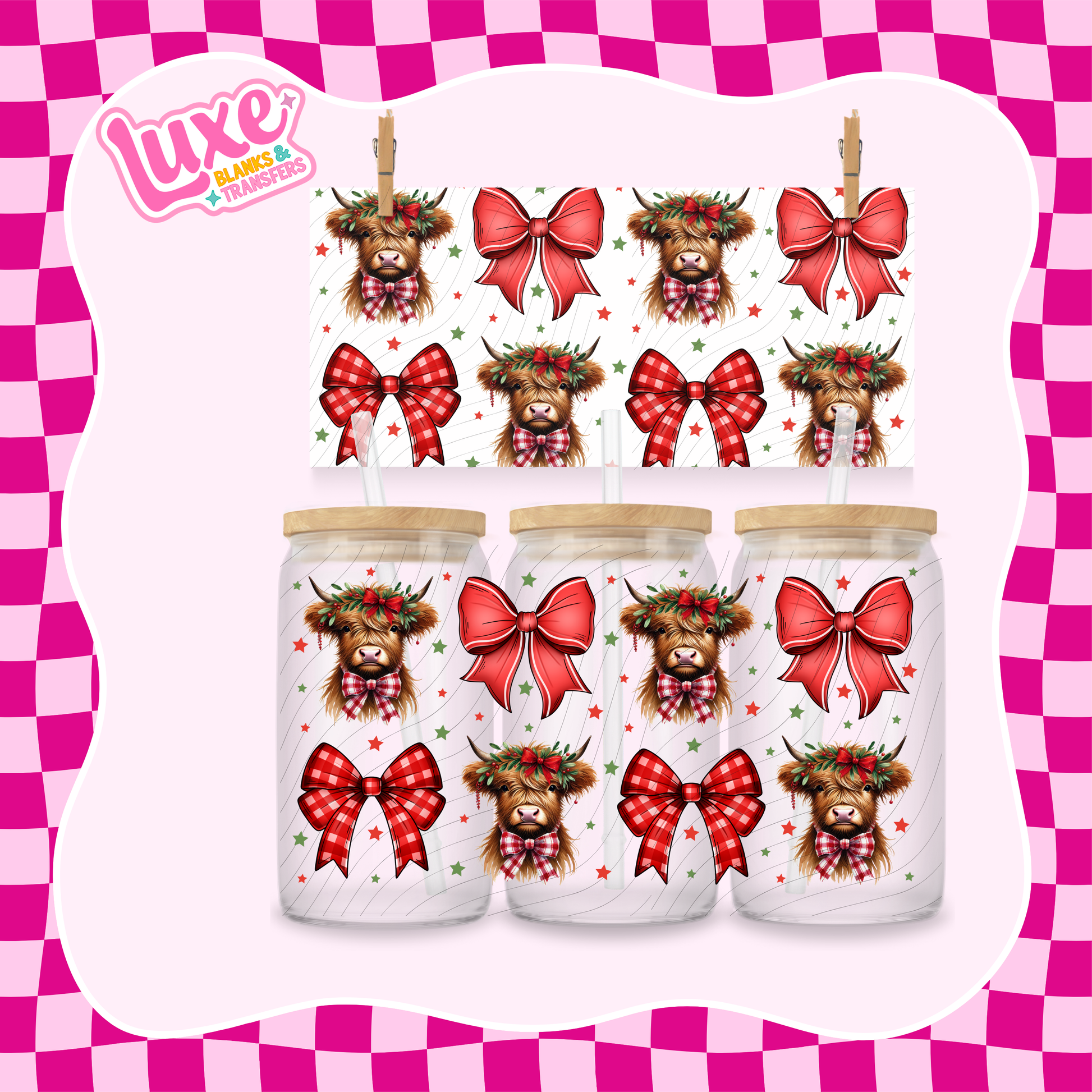 Xmas Highland Bows | UV DTF Wrap | #1166